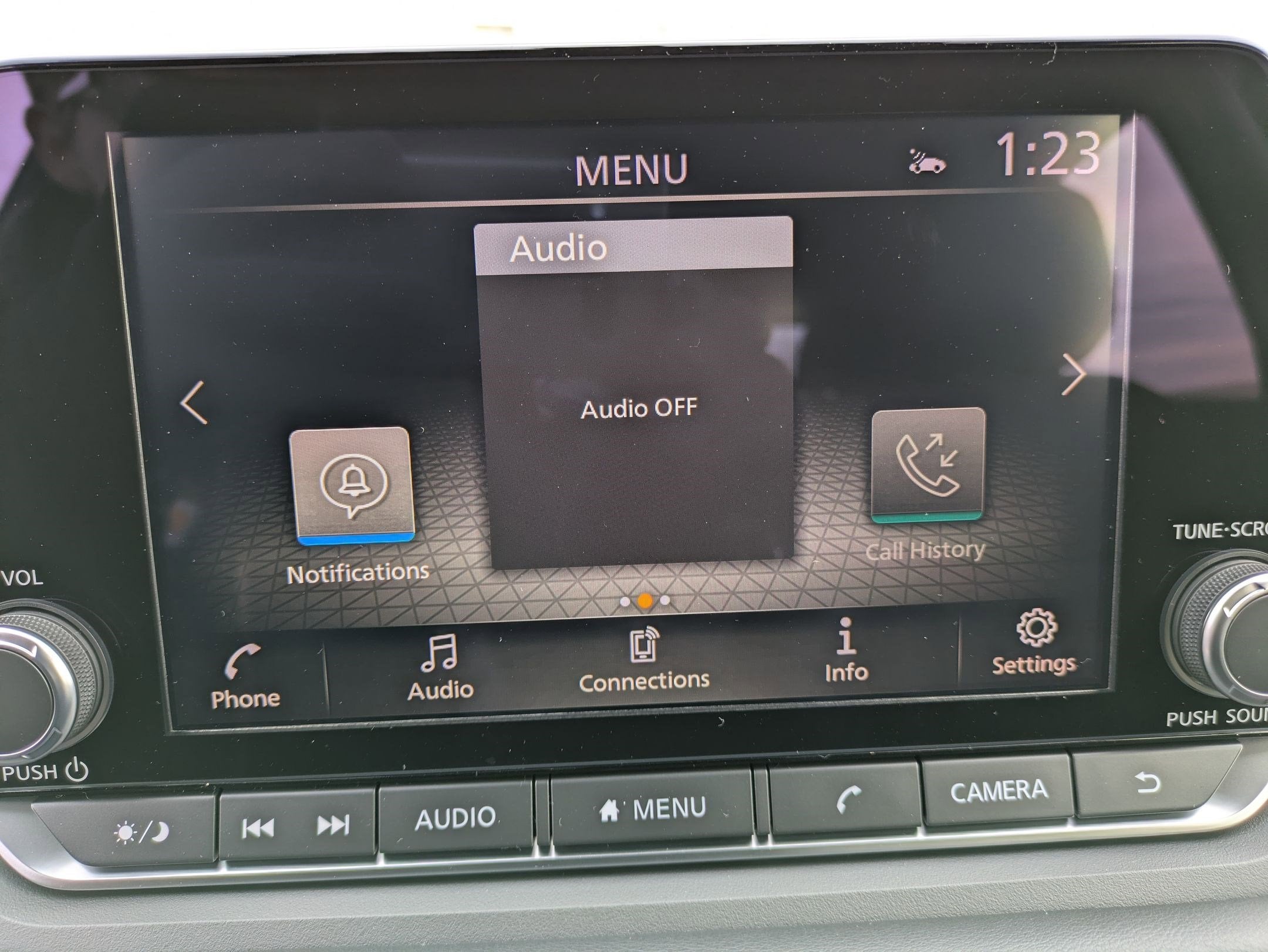 - Radio: AM/FM NissanConnect -inc: 6 speakers plus 2 tweeters, Apple CarPlay, Android Auto, 8" color touch screen display, Bluetooth®, 2 front USB type-C, Wi-Fi hotspot and NissanConnect Services powered by SiriusXM