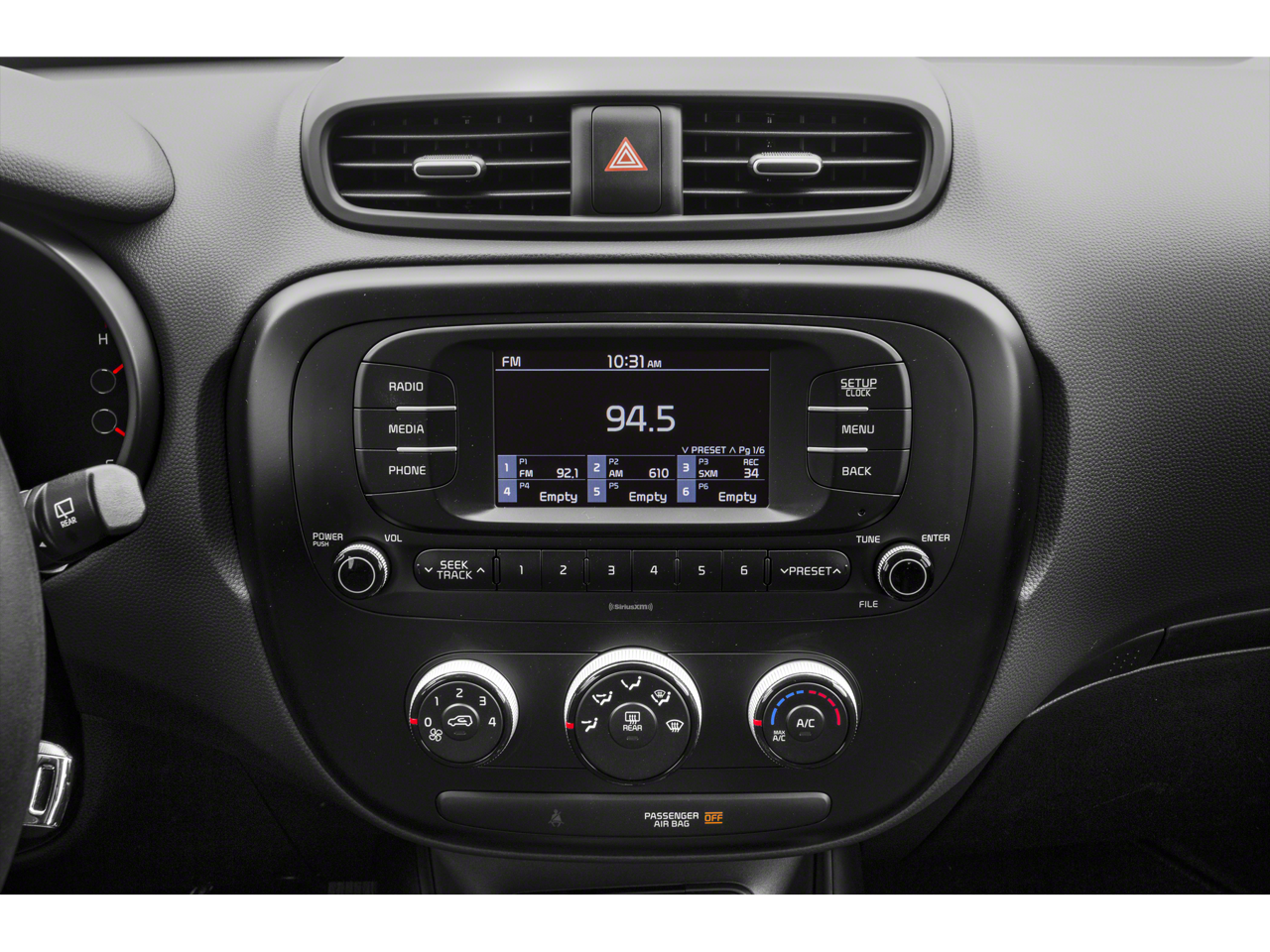 - Radio: AM/FM/MP3 Audio System -inc: Voice Recognition (VR) technology, SiriusXM, 6 speakers, 5.0" touch screen, USB/auxiliary input jacks, Bluetooth® wireless technology and steering-wheel-mounted audio and Bluetooth® controls