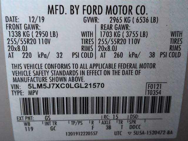 - Tires: 255/55R20 All-Season