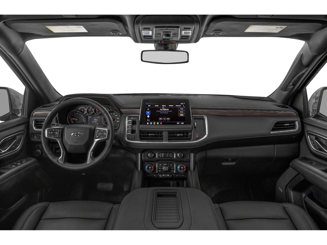 LICENSE PLATE FRONT MOUNTING PACKAGE , SATIN STEEL METALLIC, REAR AXLE, 3.23 RATIO, NOT EQUIPPED WITH STEERING COLUMN LOCK see dealer for details (Beginning with start of regular production, October 2021, all vehicles will be forced to include (R7N) Not Equipped with Steering Column Lock, which removes Steering Column Lock.), JET BLACK, LEATHER-APPOINTED SEATING SURFACES 1ST AND 2ND ROW, ENGINE, 5.3L ECOTEC3 V8 with Dynamic Fuel Management, Direct Injection and Variable Valve Timing, includes aluminum block construction (355 hp [265 kW] @ 5600 rpm, 383 lb-ft of torque [518 Nm] @ 4100 rpm) (STD), AUDIO SYSTEM, CHEVROLET INFOTAINMENT 3 PREMIUM SYSTEM WITH GOOGLE BUILT-IN 10.2" diagonal HD color touchscreen, includes multi-touch display, AM/FM stereo, Bluetooth® streaming audio for music and most phones; featuring wireless Android Auto and Apple CarPlay capability for compatible phones, advanced voice recognition, in-vehicle apps, personalized profiles for infotainment and vehicle settings (STD), Wireless Charging, Wireless Apple CarPlay/Wireless Android Auto, Wipers, front intermittent, Rainsense.