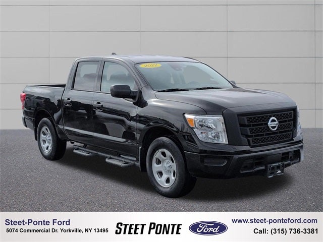 *** This Pre-Owned vehicle is located at Steet-Ponte Ford Lincoln, 5074 Commercial Drive in Yorkville, NY 13495 *** Certified. 4WD, 4-Pin/7-Pin Wiring Harness Connector (Rear Bumper), 6 Speakers, Front Overhead Console, Receiver Hitch, S Utility Package, Spray-On Bedliner. Super Black 2022 Nissan Titan S 4WD 9-Speed Automatic 5.6L V8 DOHC 32V 400hp