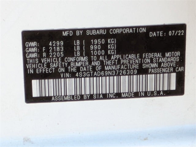 2022 Subaru Impreza Premium AWD CVT Lineartronic 2.0L DOHC Crystal White Pearl