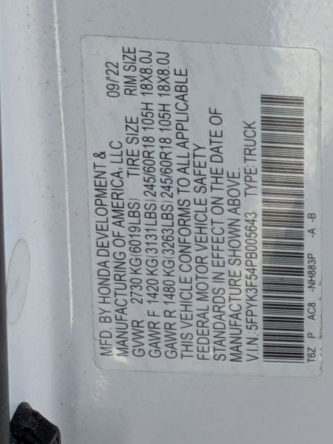 - Vehicle Name: Honda Ridgeline