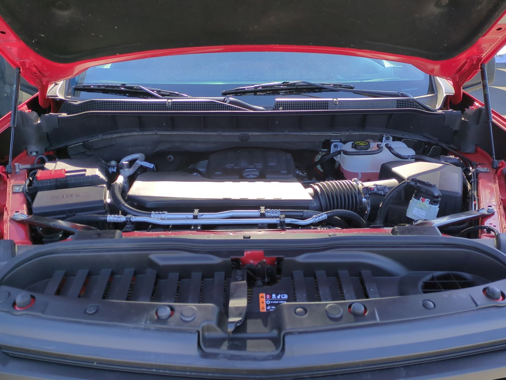 TIRES, 275/60R20 ALL-SEASON, BLACKWALL (STD), STEERING COLUMN LOCK, ELECTRICAL, SEATS, FRONT 40/20/40 SPLIT-BENCH with covered armrest storage and under-seat storage (lockable) (STD), RED HOT, REAR AXLE, 3.42 RATIO, LPO, ALL-WEATHER FLOOR LINERS 1st and 2nd rows on Crew Cab and Double Cab, (includes Chevrolet Bowtie logo),, LICENSE PLATE KIT, FRONT, JET BLACK, CLOTH SEAT TRIM, ENGINE, TURBOMAX (310 hp [231 kW] @ 5600 rpm, 430 lb-ft of torque [583 Nm] @ 3000 rpm) (STD), CUSTOM PREFERRED EQUIPMENT GROUP includes standard equipment.