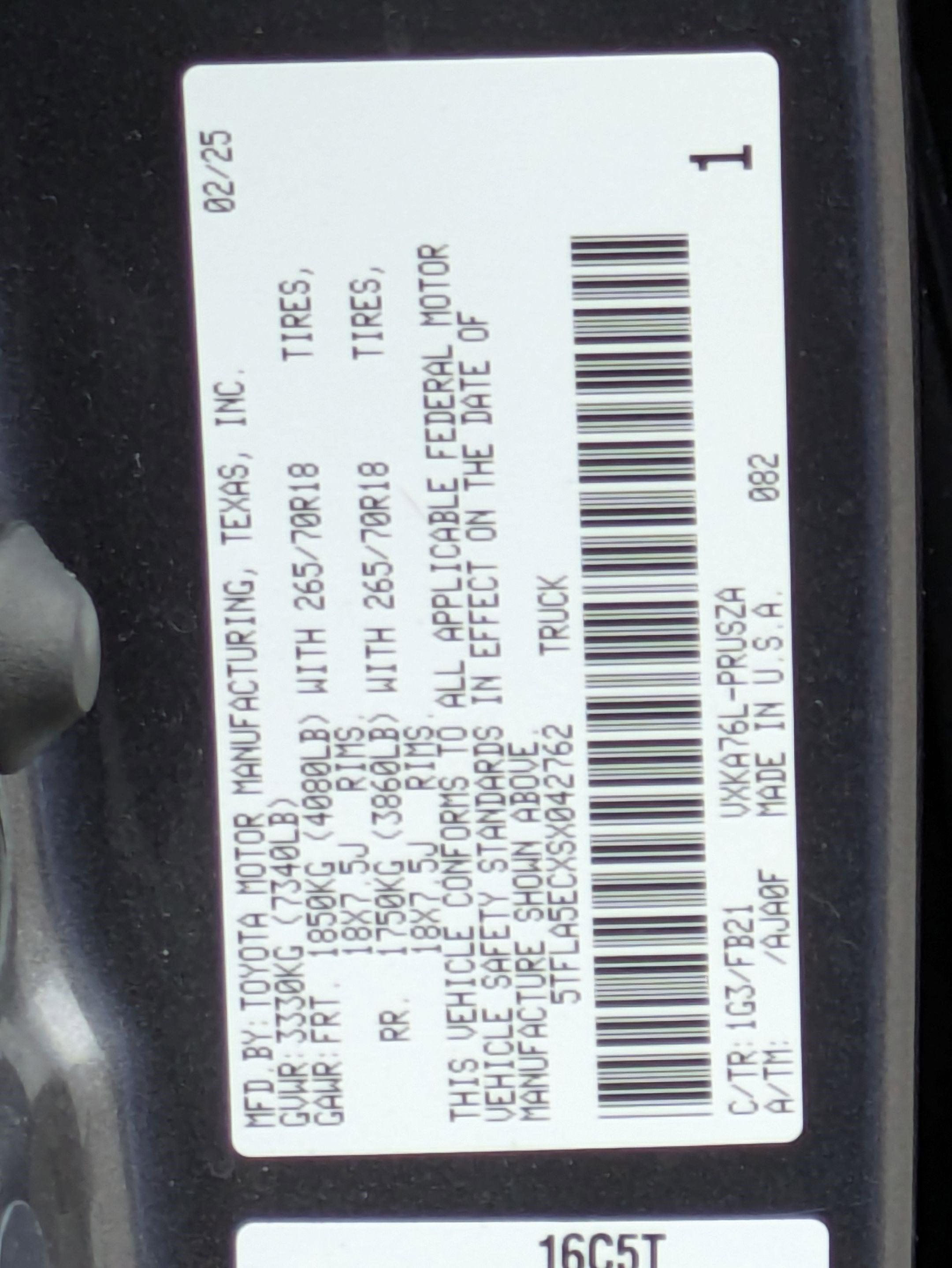 - Front Tire Size: P265/70TR18